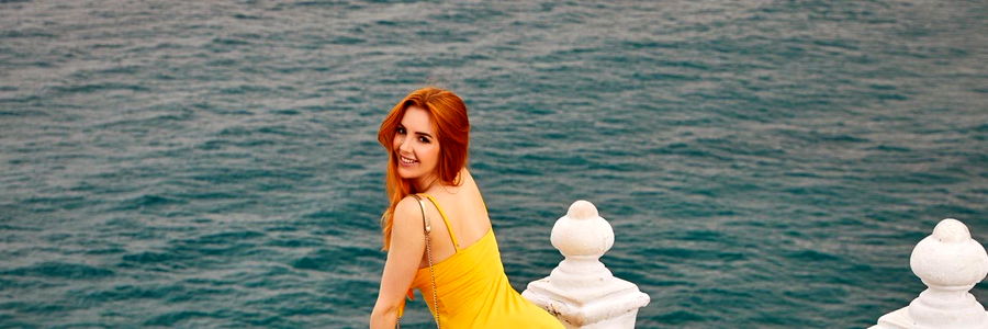 This captivating image showcases a beautiful model, Scarlett Jones, confidently posing in a vibrant yellow outfit. The model exudes an air of sophistication and allure. Her features are striking, and the lighting enhances her natural beauty. The outfit is flattering and stylish, complementing her figure perfectly. This photograph is ideal for use in fashion, beauty, or lifestyle content. The model's pose is dynamic and engaging, making this a standout image.